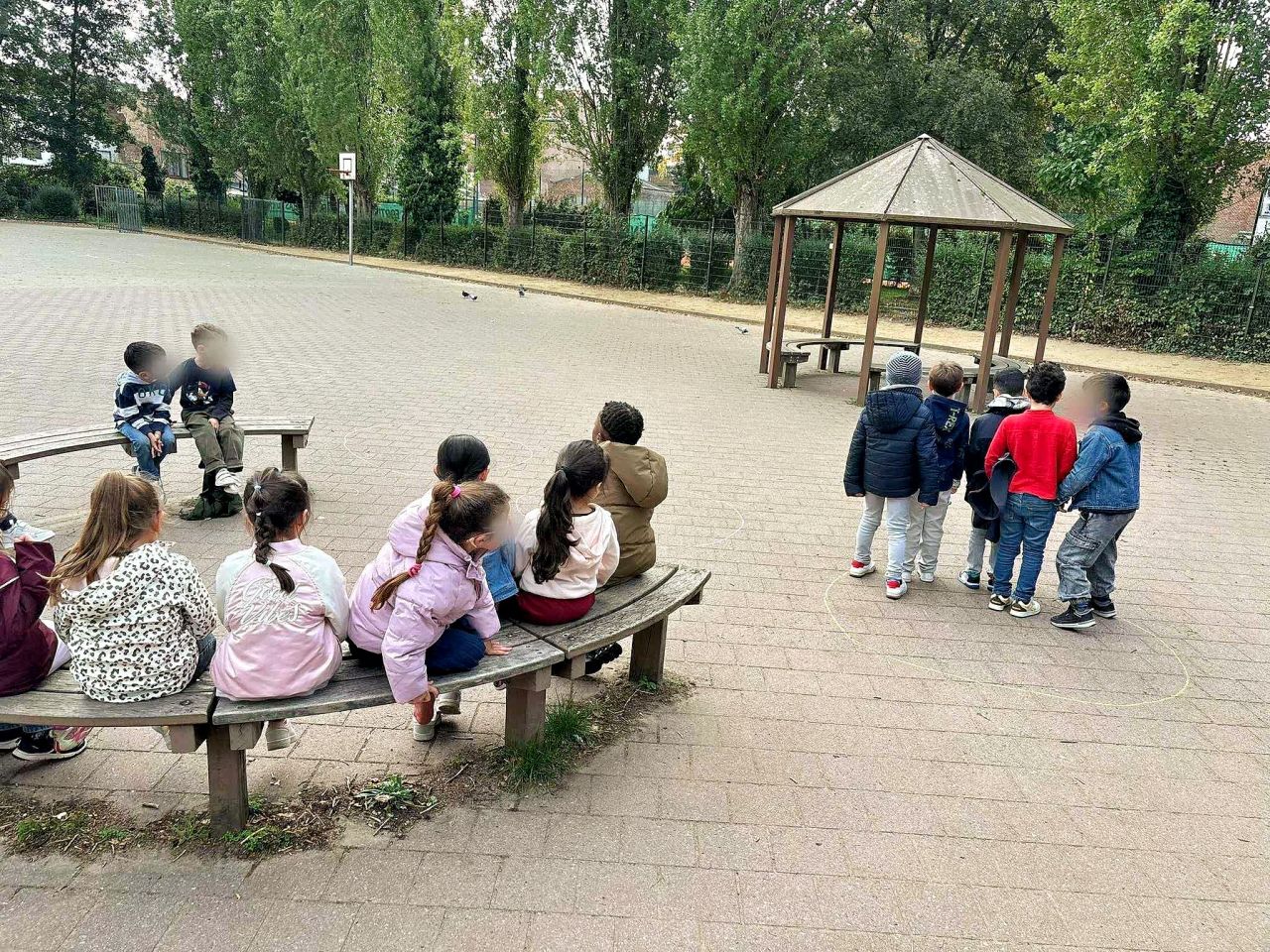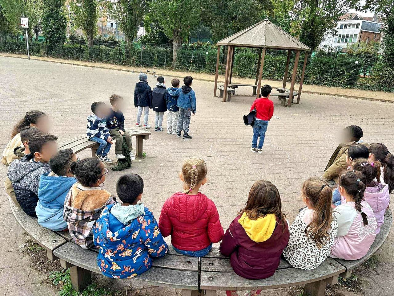 Dans le cadre d’une démarche active et progressive, les élèves de 1re année ont abordé la notion d’addition à travers une activité ludique menée dans la cour de récréation. Par la mise en situation, ils sont devenus les « termes » de l’opération, vivant concrètement le calcul avant de le représenter sur leurs doigts, puis de le formaliser avec les nombres.